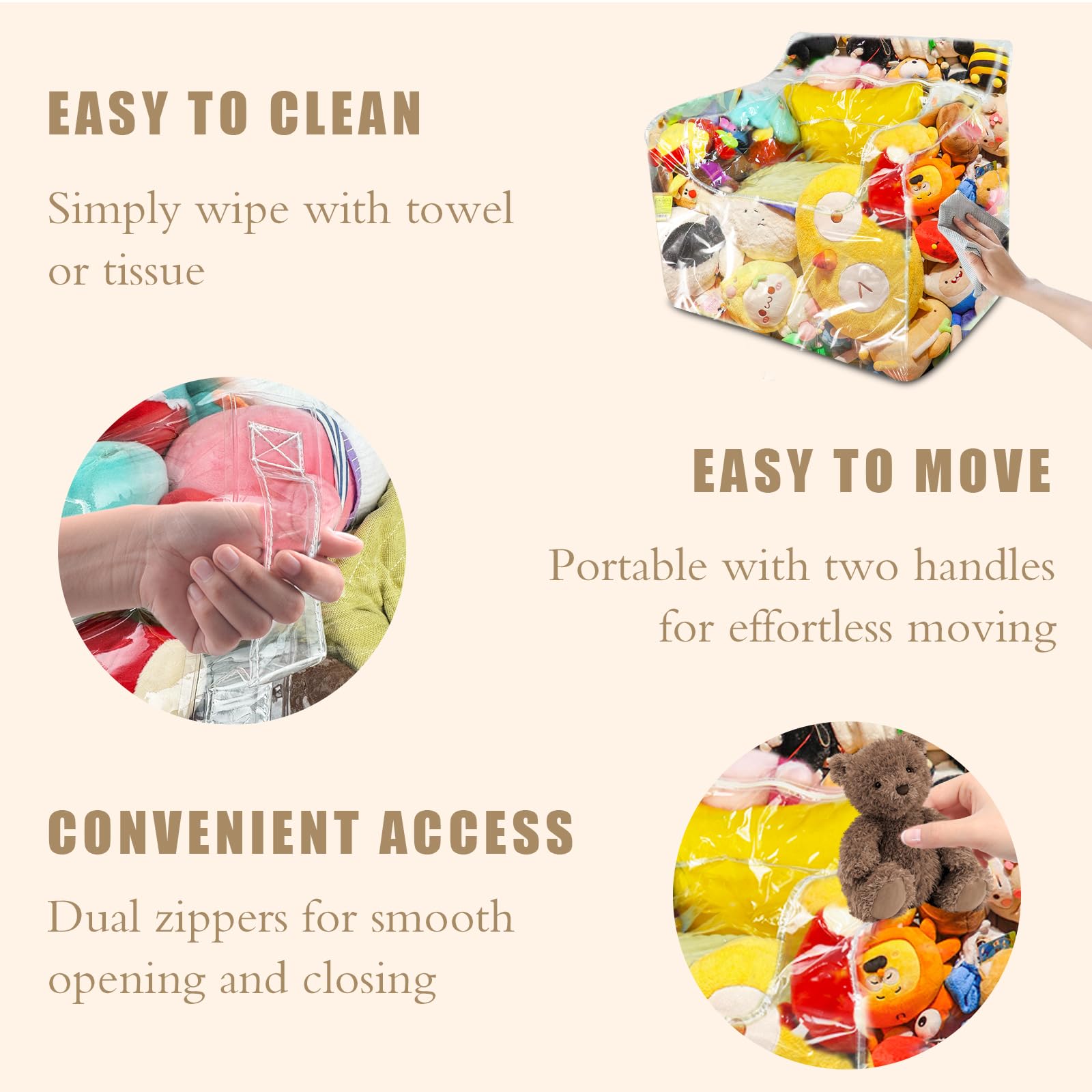 • 【Clear Good Quality & Material】: The bean bag for stuffed animals storage is made of thickened PVC material, which is smooth and wear-resistant, waterproof and stain-resistant, and can fully protect the cleanliness of plush toys. Its transparent design can quickly find the plush toys you want without opening the bag, adding a touch of whimsy to the room, and turning cleaning time into a celebration