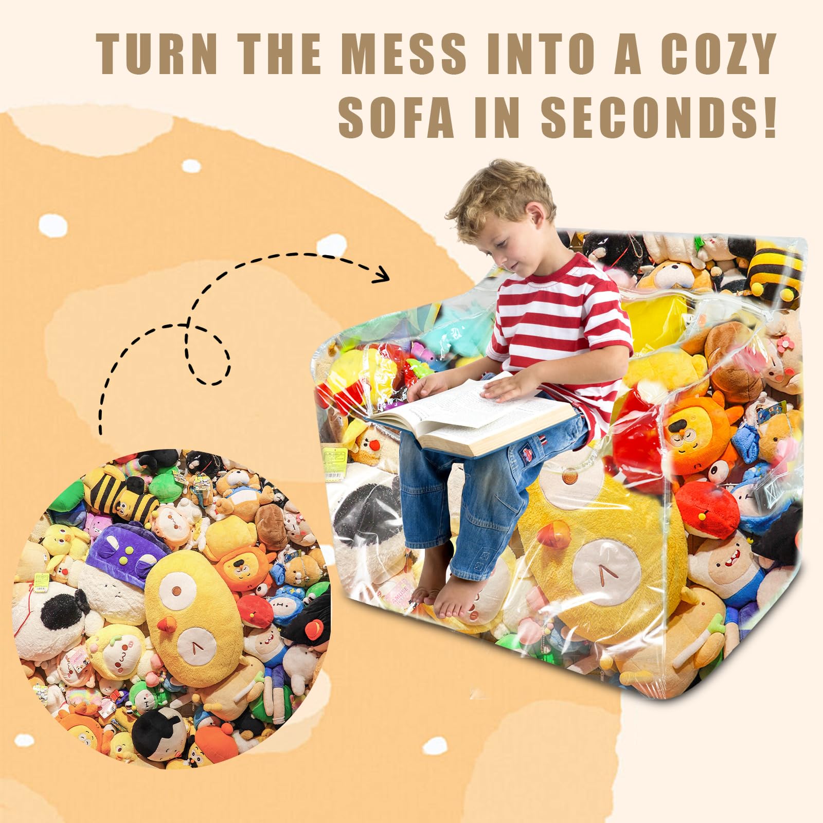 • 【Stuffed Animal Storage Cover】: This clear stuffed animal bean bag storage is a creative way to store stuffed toys. After filling the bag with stuffed animals, pillows, blankets, etc., you will be surprised to find that it has become a comfortable seat, making the room less cluttered. You can also clearly see your favorite stuffed toys, creating an exclusive throne for your child's memories, full of fun, and providing a comfortable place for children to read, relax, and play